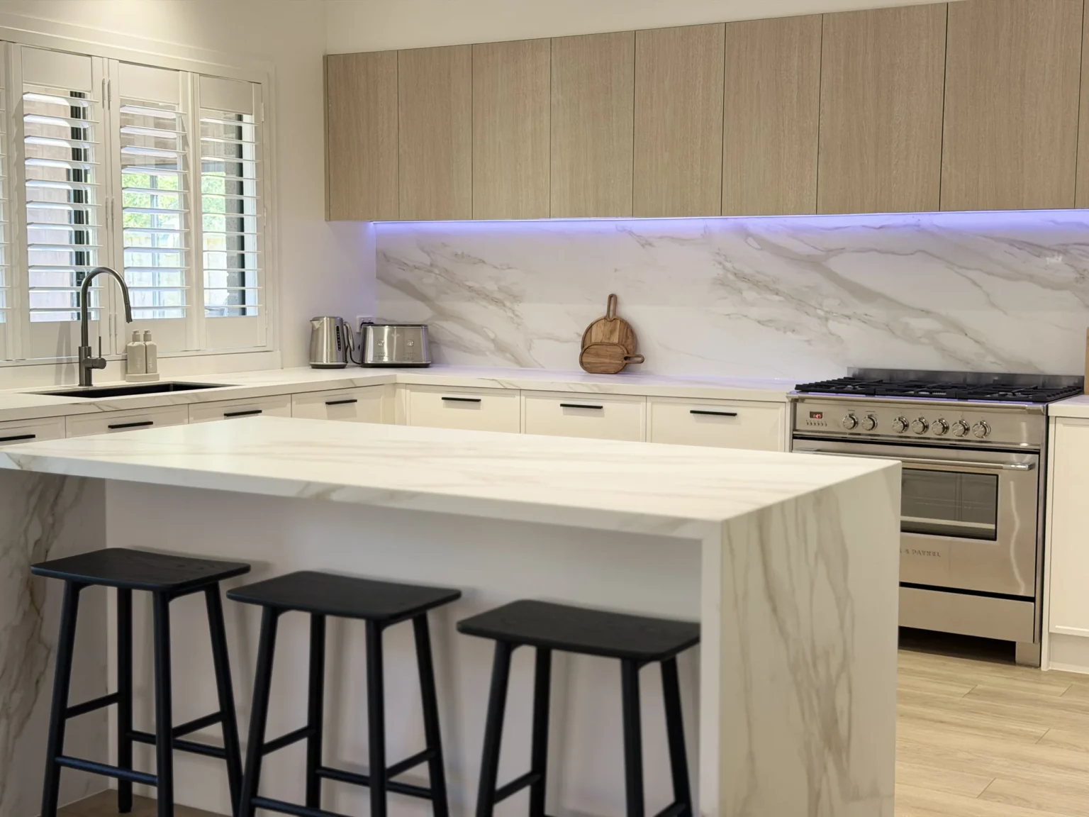 Here are some before & after photos of kitchen renovations we’ve completed for customers using Dolce Whita Porcelain for their installation.